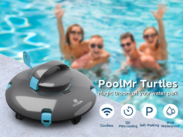 PoolMr Cordless Robotic Pool Cleaner Turtles- Above Ground Pool Vacuum - 15Kpa Strong Suction, 52 Ft/Min Speed, Dual-Motor, Self-Parking, Ideal for Flat Swimming Pools