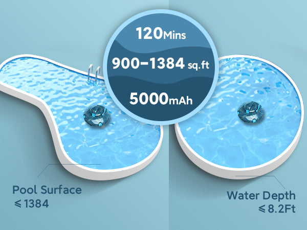 90Mins Battery Life: The 3500mAh rechargeable lithium-ion battery provides up to 90 minutes of cleaning time, covering up to 860 sq. ft. This makes it ideal for small and medium sized pools. With this impressive battery life, you can clean your pool in one go without having to worry about frequent recharges